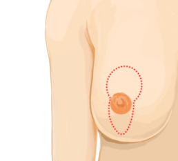 乳頭の周囲を中心に、切開する部分を決定します